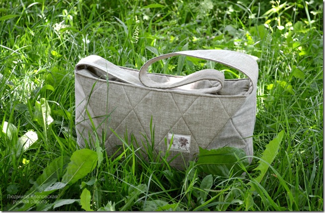 Сумка прямоугольной формы, размером 12*20*40см, простегана ромбами и украшена бирочкой, никаких излишеств, одна практичность)